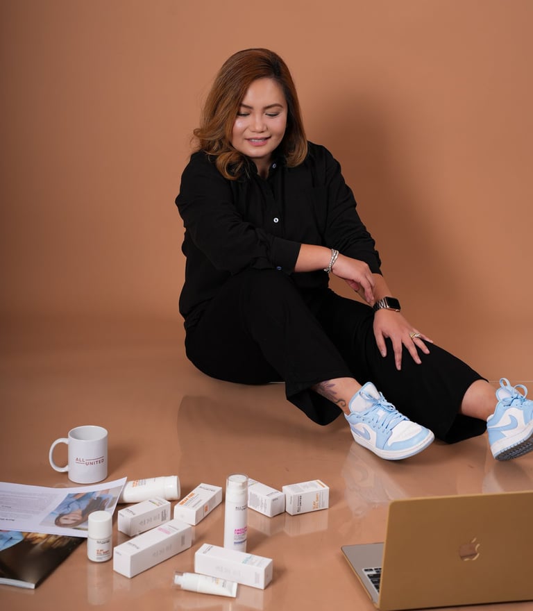 ALL UNITED is not just a skincare brand; it is a celebration of self-love, authenticity, transparency, efficiency and empowerment. Founded by Aura Guacena, our journey began with a profound desire for change and a passion to redefine beauty standards.